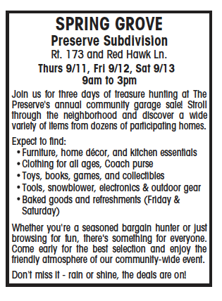September Garage Sale!